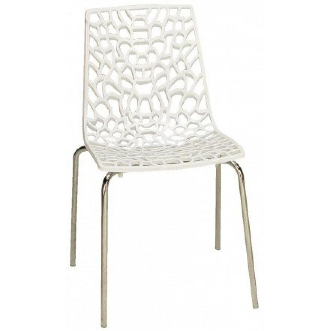 Cette chaise blanche en polycarbonate sera parfaite pour un intérieur design. Son style vous permet également de vous en servir en extérieur, pourquoi pas comme chaise de salon de jardin. Son look “gruyère” lui apporte sa touche d’originalité.