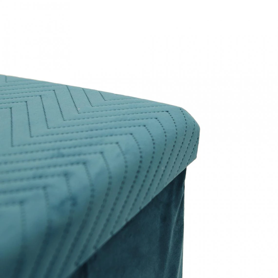 Ce Coffre pliable en velours bleu DUDLEY est un meuble qui a tout pour vous surprendre. Avec son revêtement bleu en velours à motifs zig zag, il apporte de la couleur et une touche de raffinement à votre intérieur. Pratique, il peut servir d’assise ou de rangement supplémentaire.
