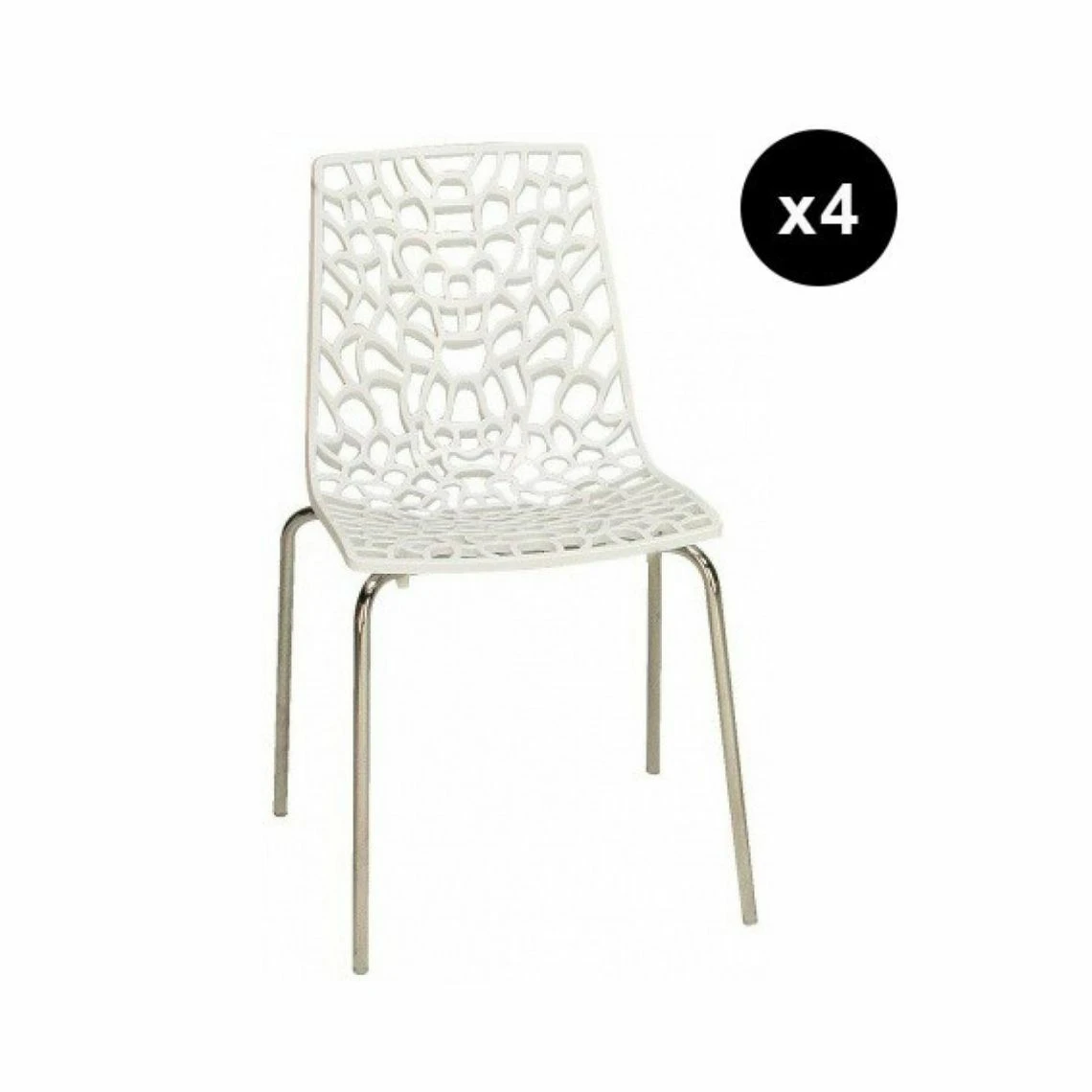 Ce lot de 4 chaises blanche en polycarbonate sera parfaite pour un intérieur design. Son style vous permet également de vous en servir en extérieur, pourquoi pas comme chaise de salon de jardin. Son look “gruyère” lui apporte sa touche d’originalité.