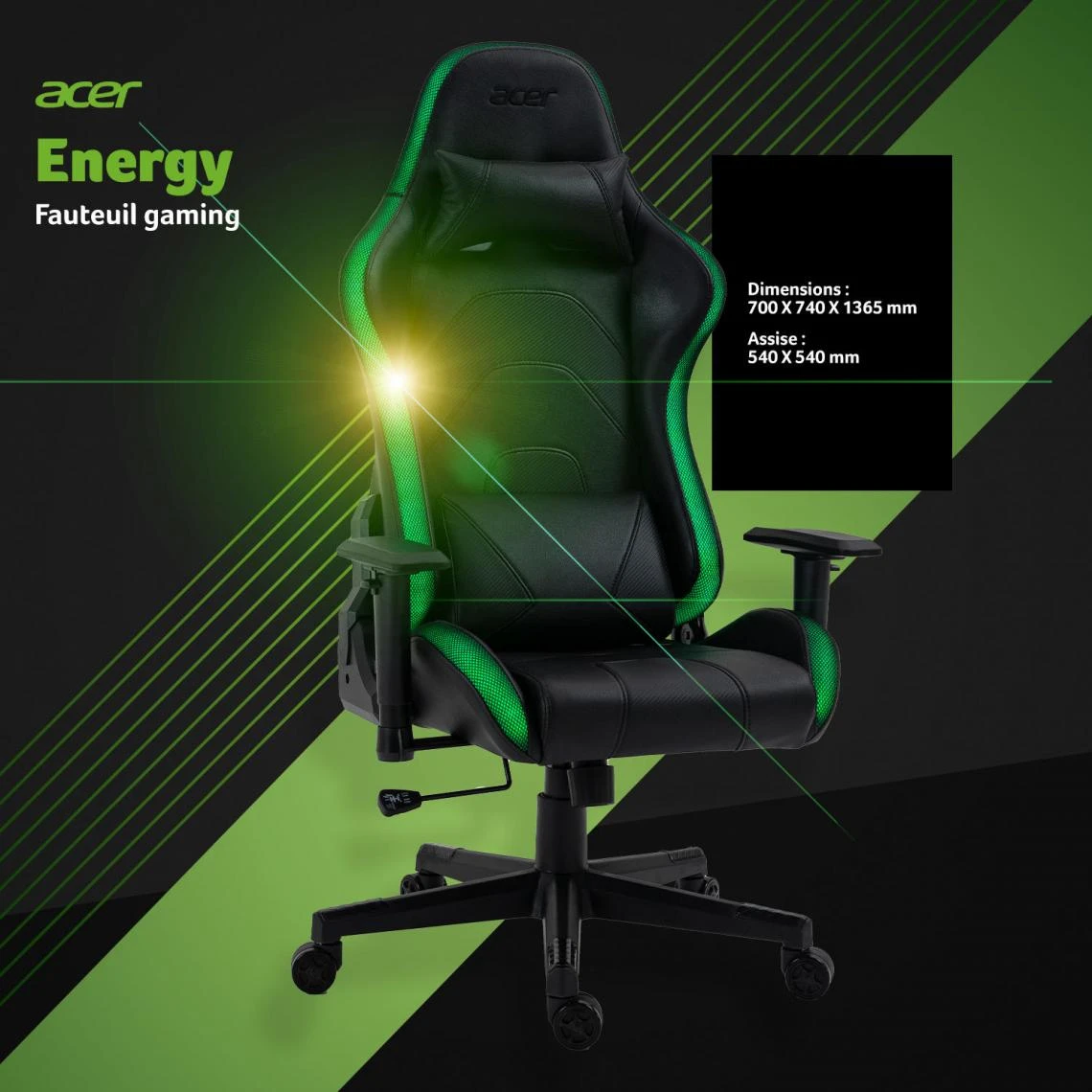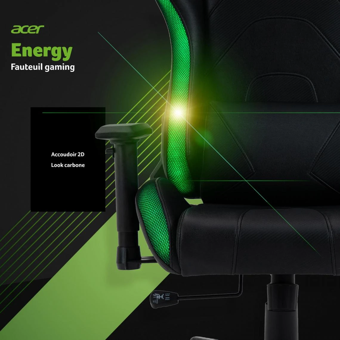 Points forts Acer Acer gaming – Fauteuil gaming Energy – RGB contrôlable – Full réglable – Design Carbone