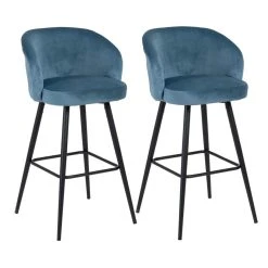 Points forts Altobuy DOLCE – Lot de 2 Tabourets Velours Bleu Piètement Métal Noir