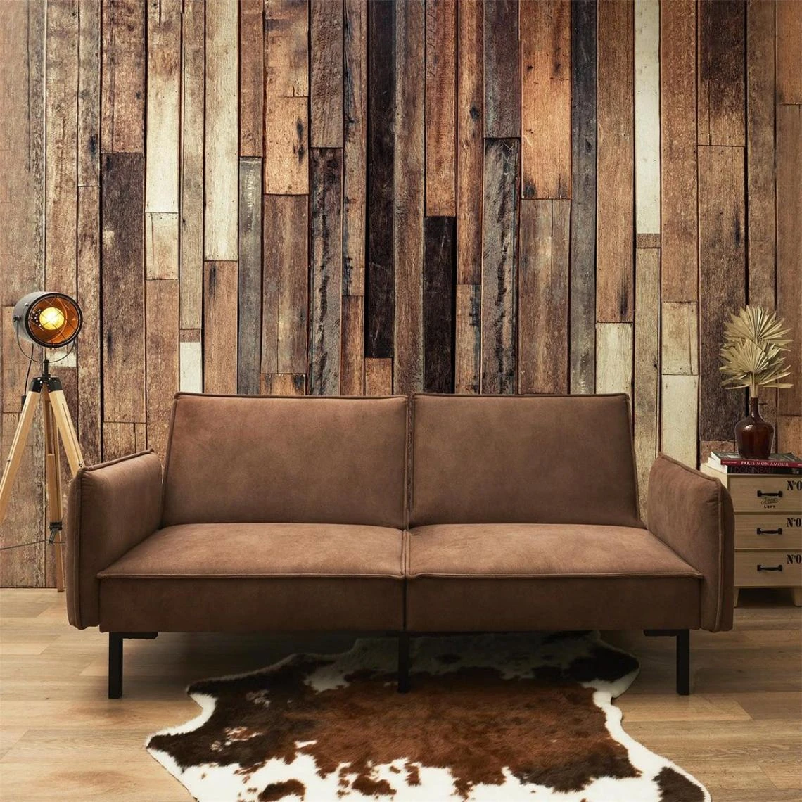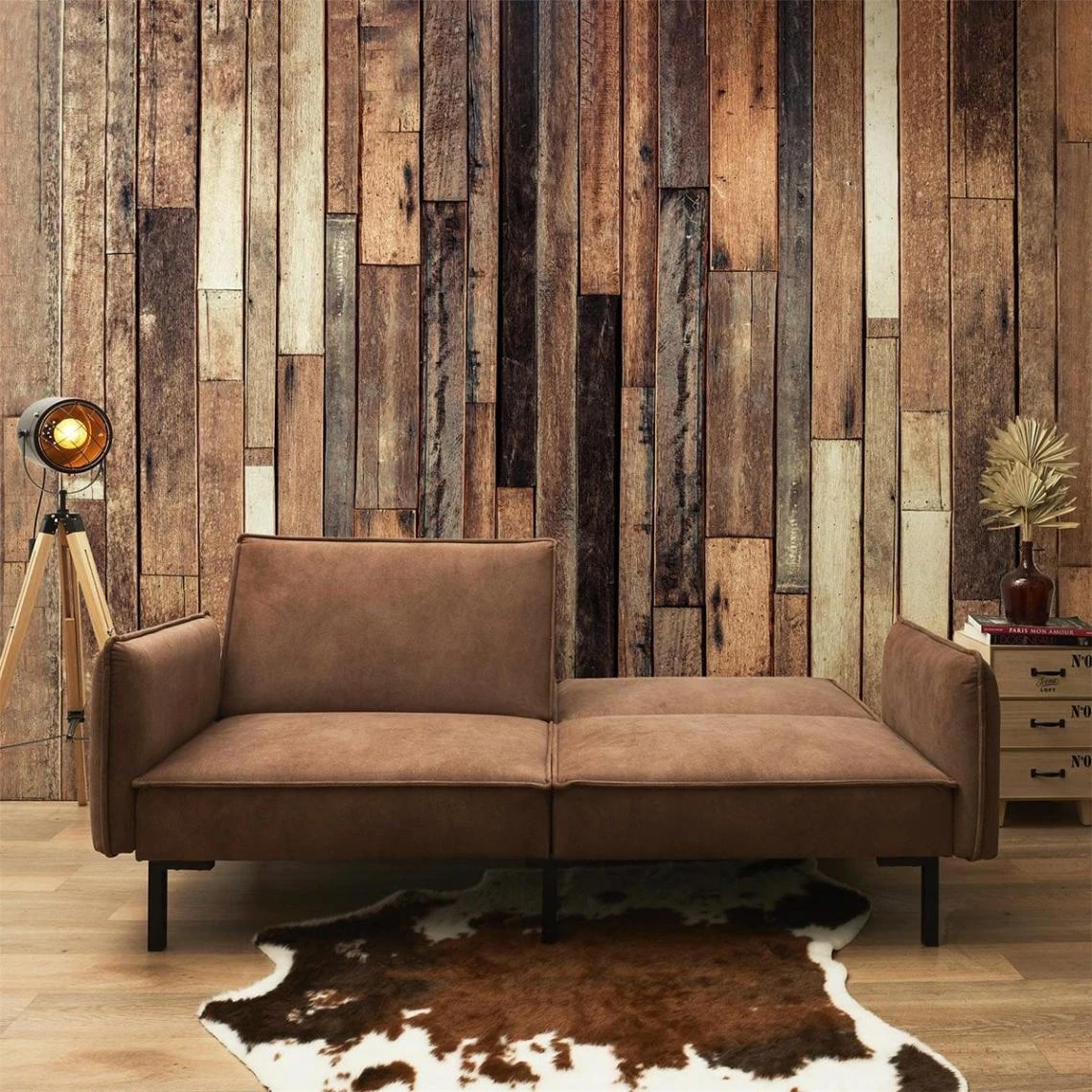 Points forts Altobuy FLIP – Canapé Convertible Bois d’Eucalyptus Tissu Marron