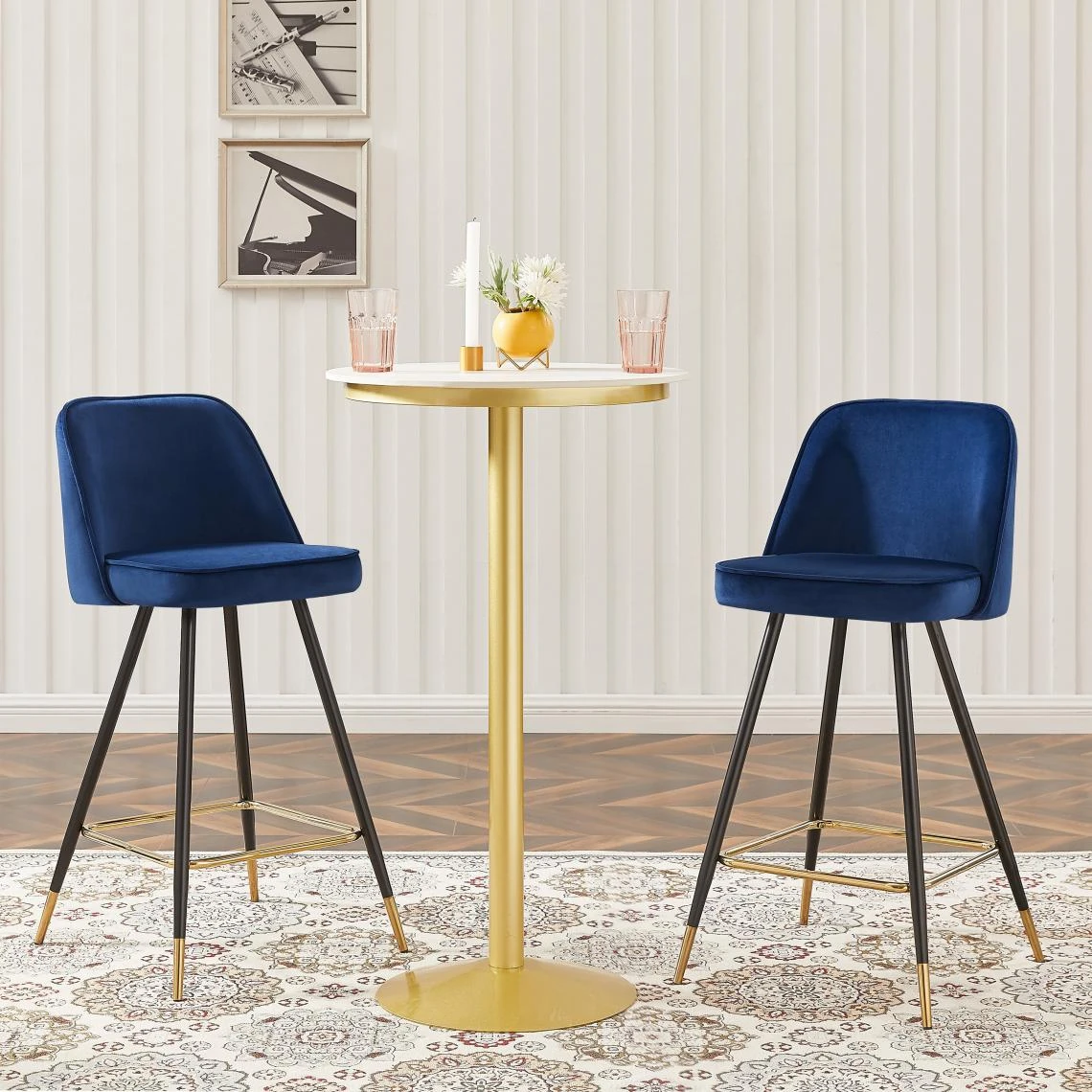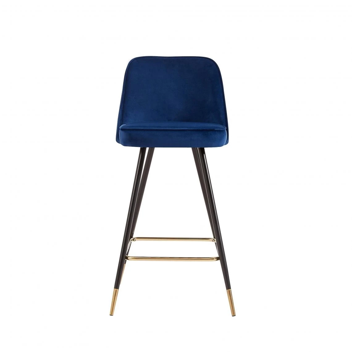 Points forts Baïta Lot De 2 Tabourets De Bar Eugene – Velours Bleu Avec Pieds Noirs Et Dorés – Hauteur D’assise 72 Cm