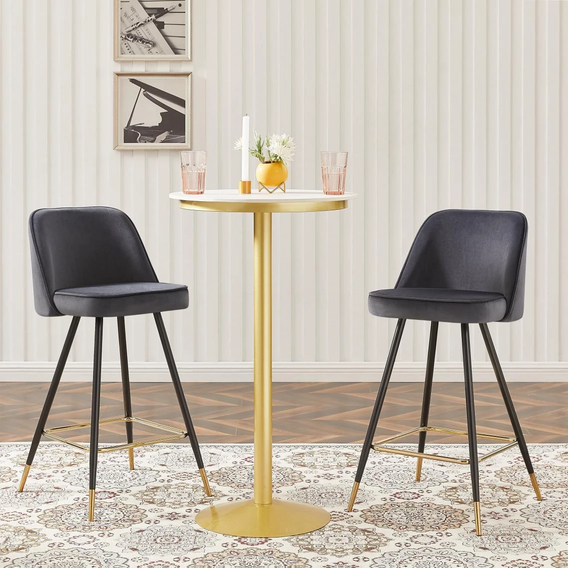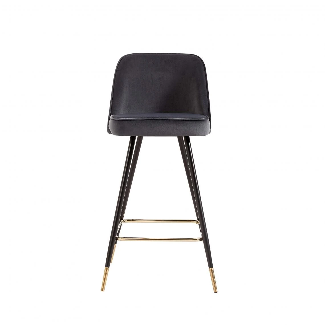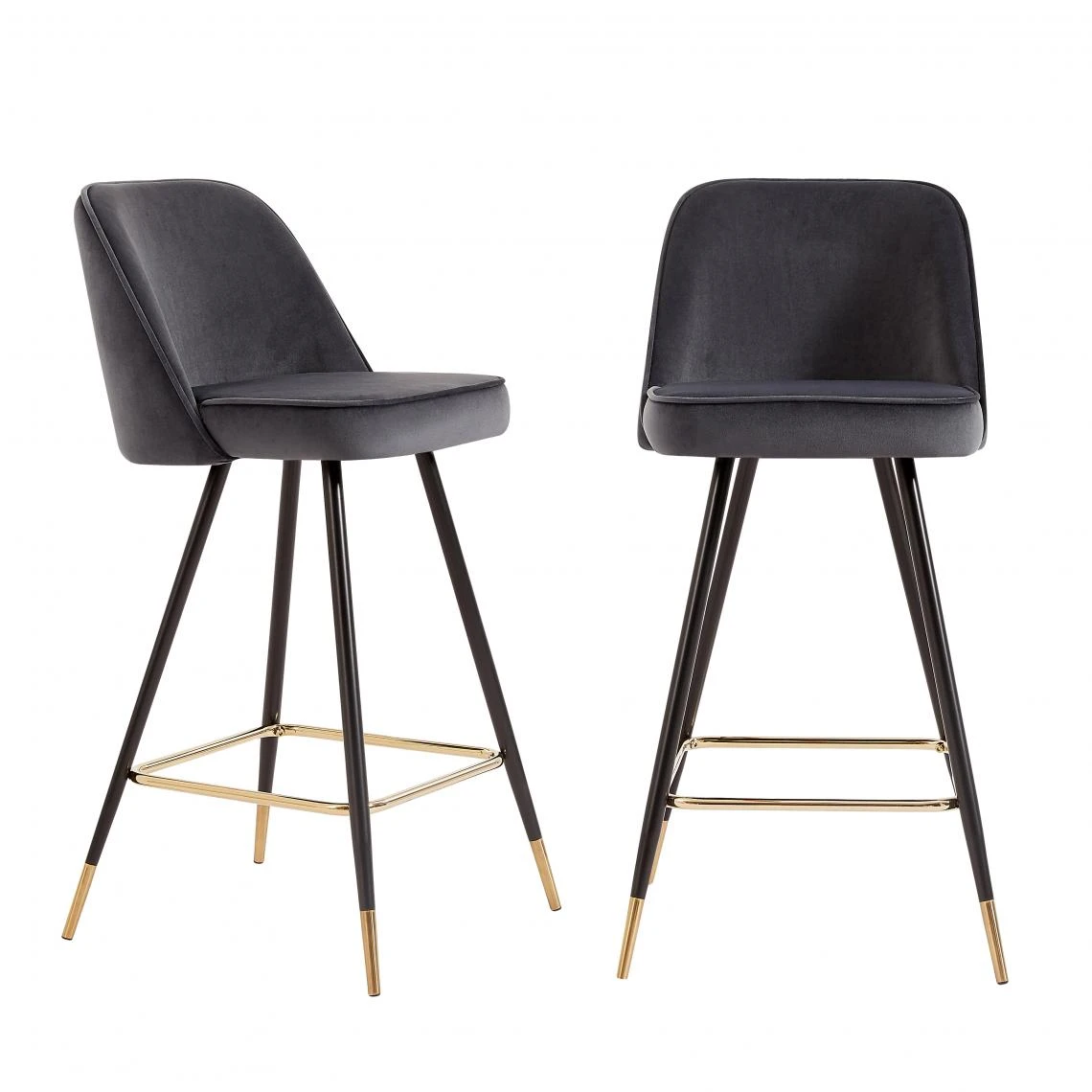 Points forts Baïta Lot De 2 Tabourets De Bar Eugene – Velours Gris Avec Pieds Noirs Et Dorés – Hauteur D’assise 72 Cm