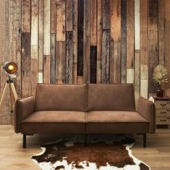 Altobuy FLIP – CanapĂ© Convertible Bois D’Eucalyptus Tissu Marron