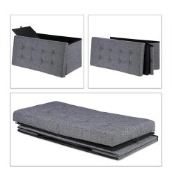HELLOSHOP26 Banquette Banc Pour Coffre De Rangement En Lin Avec Couvercle Gris 114…