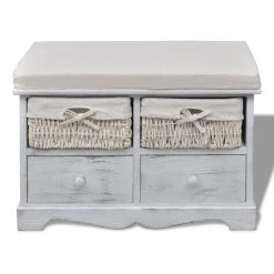 HELLOSHOP26 Banquette Pouf Tabouret Meuble Banc De Rangement Blanc En Bois Avec 2 …