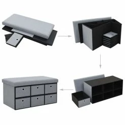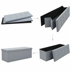 HELLOSHOP26 Banquette Pouf Tabouret Meuble Banc De Rangement Pliable Faux Lin 150 …