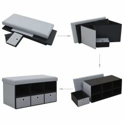 HELLOSHOP26 Banquette Pouf Tabouret Meuble Banc De Rangement Pliable Faux Lin 76 C…