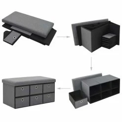 HELLOSHOP26 Banquette Pouf Tabouret Meuble Banc De Rangement Pliable Faux Lin 110 …