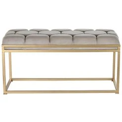 Pegane Banquette En MĂ©tal Coloris Gris Et Pieds DorĂ© – Longueur 91 X Profon…