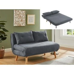 Vente-unique CanapĂ© 2 Places Convertible En Tissu VALERIO – Gris