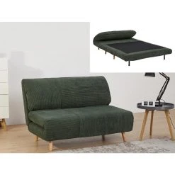 Vente-unique CanapĂ© 2 Places Convertible En Velours CĂ´telĂ© PALULA – Vert FoncĂ©