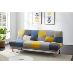 Vente-unique CanapĂ© 3 Places Convertible Clic-clac En Tissu MARDAG – Patchwork Gri…