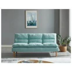Vente-unique CanapĂ© 3 Places Convertible Clic-clac En Tissu CHARLISE – Vert D’eau