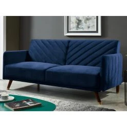 Vente-unique CanapĂ© 3 Places Convertible Clic-clac En Velours JORIS – Bleu Nuit