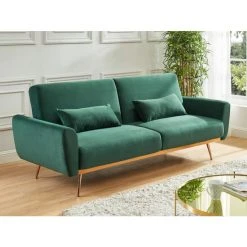 Vente-unique CanapĂ© 3 Places Convertible Clic-clac En Velours LAUNEI – Vert Sapin