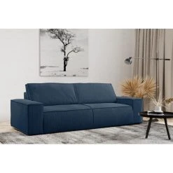 Vente-unique Canapé 3 Places Convertible En Velours Côtelé Bleu Marine AMELIA
