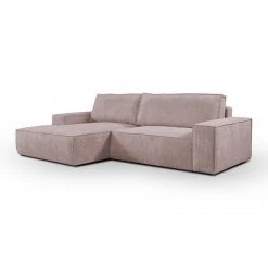 Vente-unique CanapĂ© D’angle Convertible En Velours CĂ´telĂ© Rose AMELIA – Angle Ga…