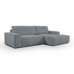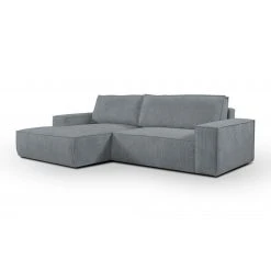 Vente-unique CanapĂ© D’angle Convertible En Velours CĂ´telĂ© Gris AMELIA – Angle Dr…