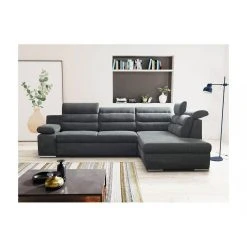 Vente-unique CanapĂ© D’angle Convertible En Tissu Et Simili Gris KERIO – Angle Droi…