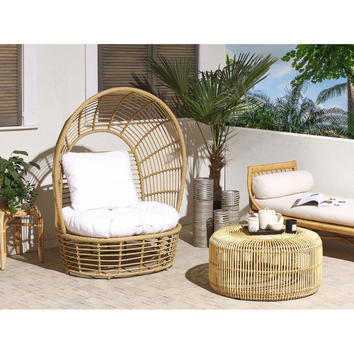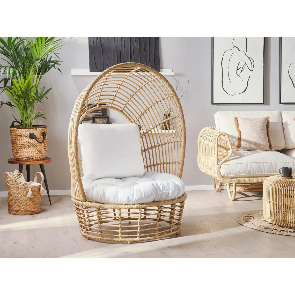 Points forts Beliani Fauteuil cocon en rotin et coussin beige LIDO