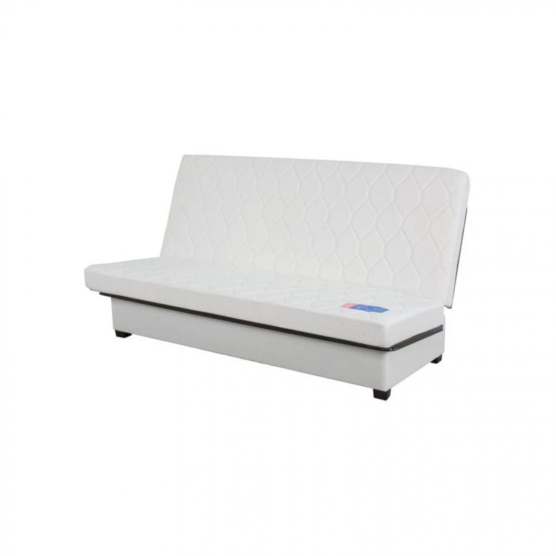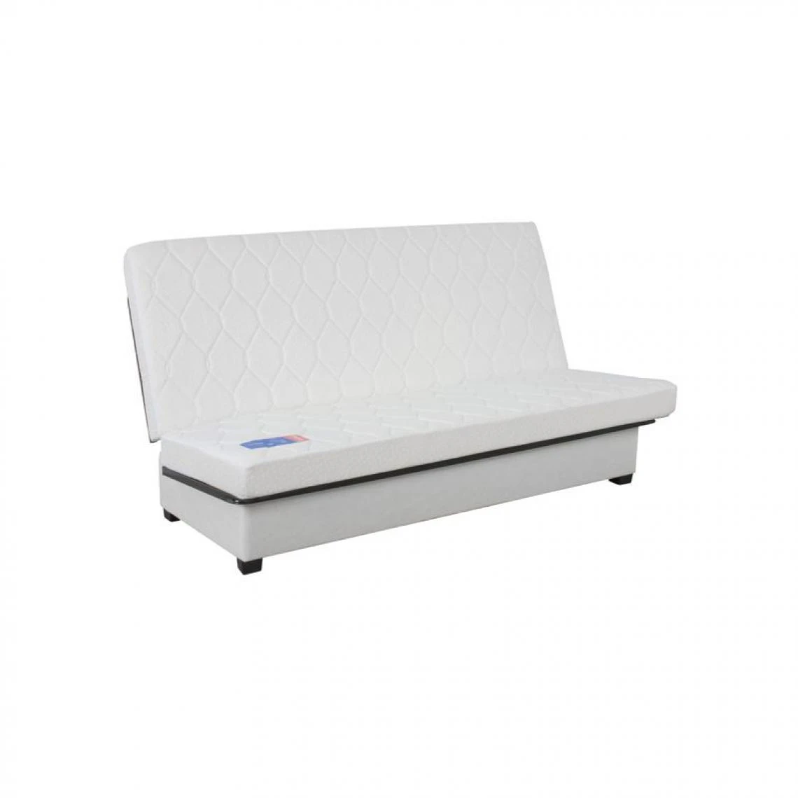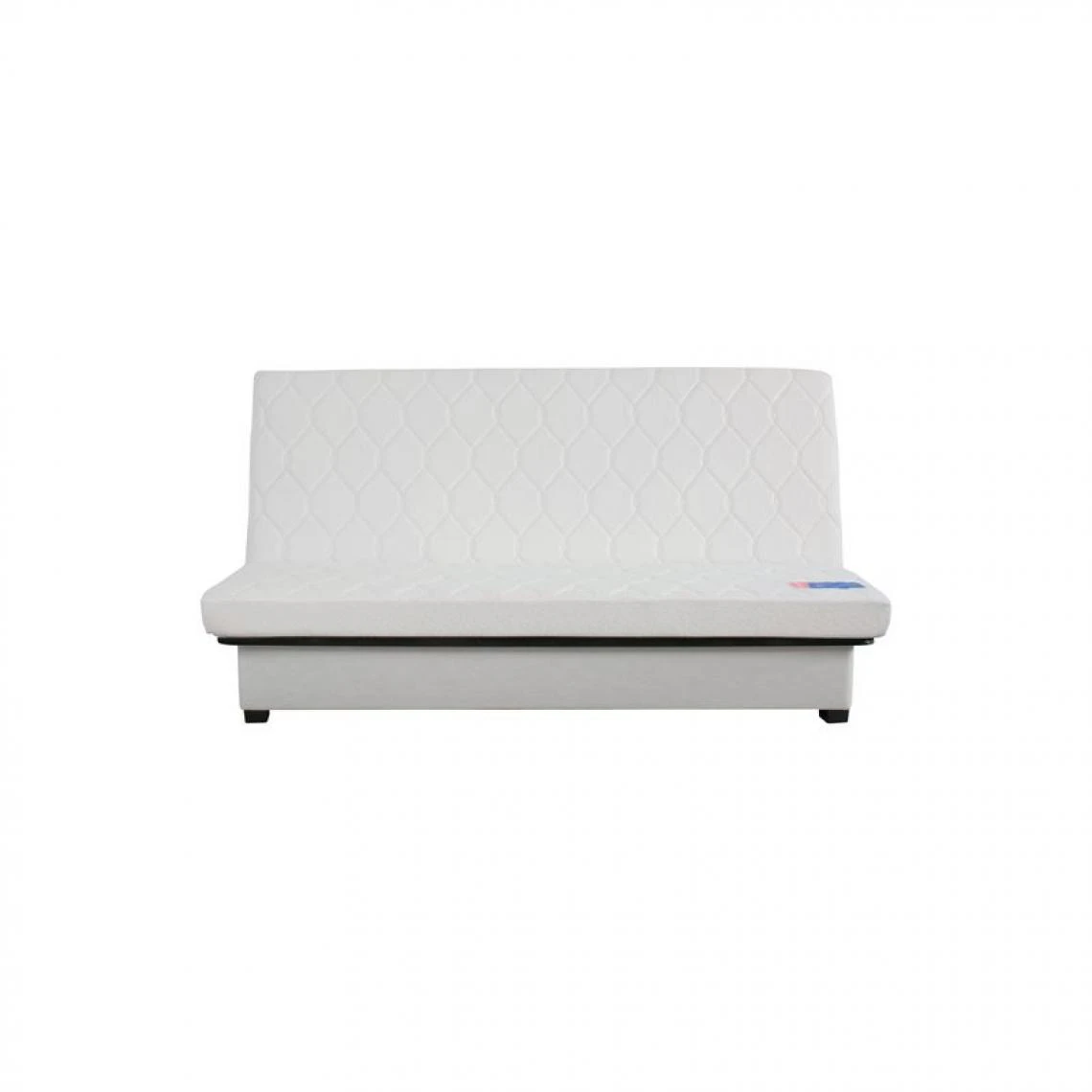 Votre confort de jour comme de nuit est assuré avec cette banquette lit clic-clac 2 places. Allongé, vous reposez sur un matelas Dunlopillo de 12 cm, au garnissage en mousse polyuréthane d’une densité de 35 kg/m3. Assis, vous profitez du revêtement douillet et des deux coussins dont est agrémentée cette banquette lit en métal.