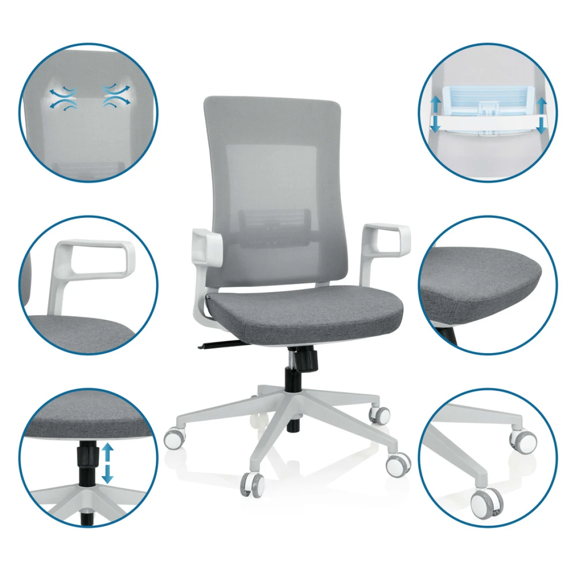 Points forts Hjh Office Chaise de bureau COMFIO WM Tissu maille / Tissu gris hjh OFFICE
