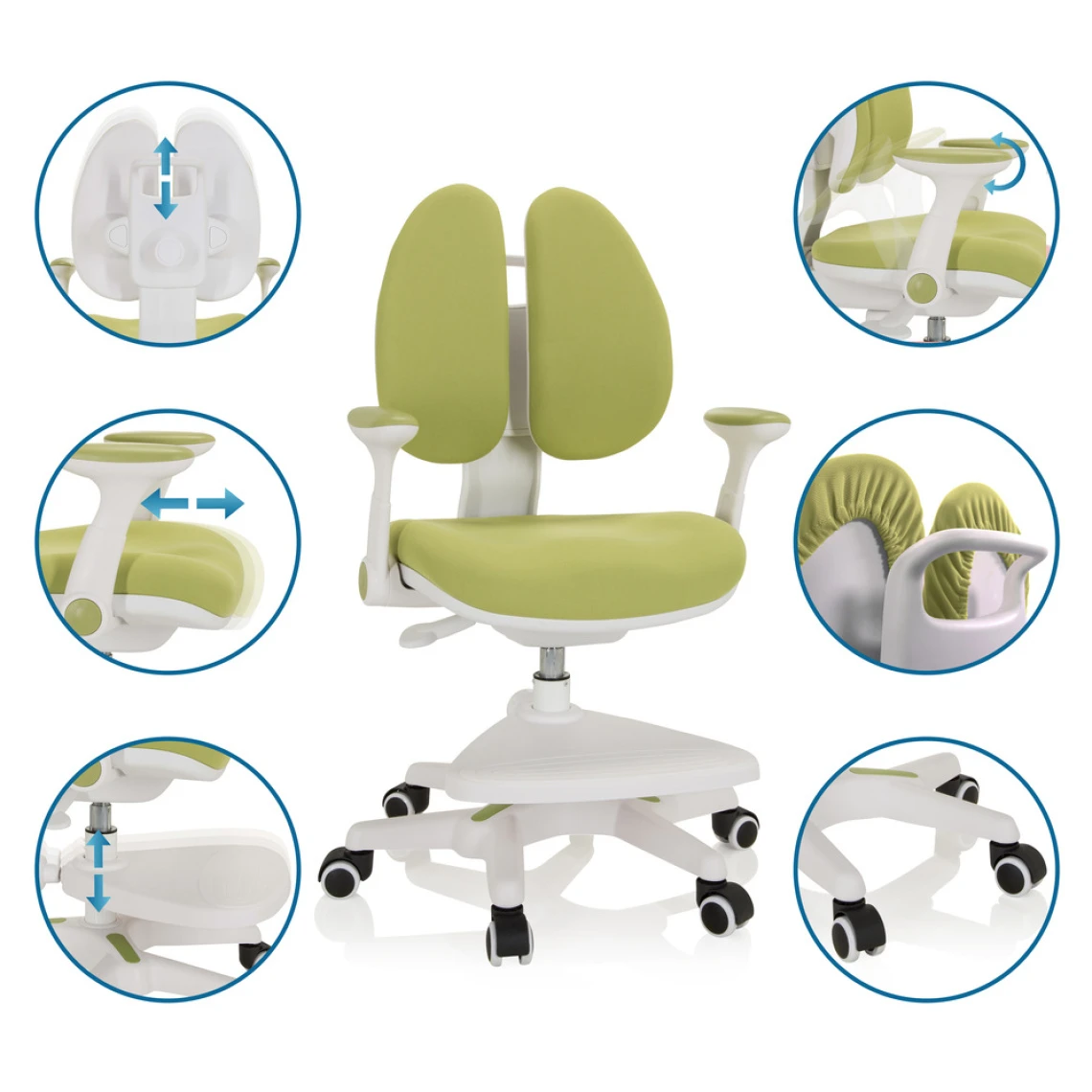 - Chaise pivotante ergonomique pour enfants et adolescents, réglable de différentes manières en fonction de la phase de croissance de l’enfant