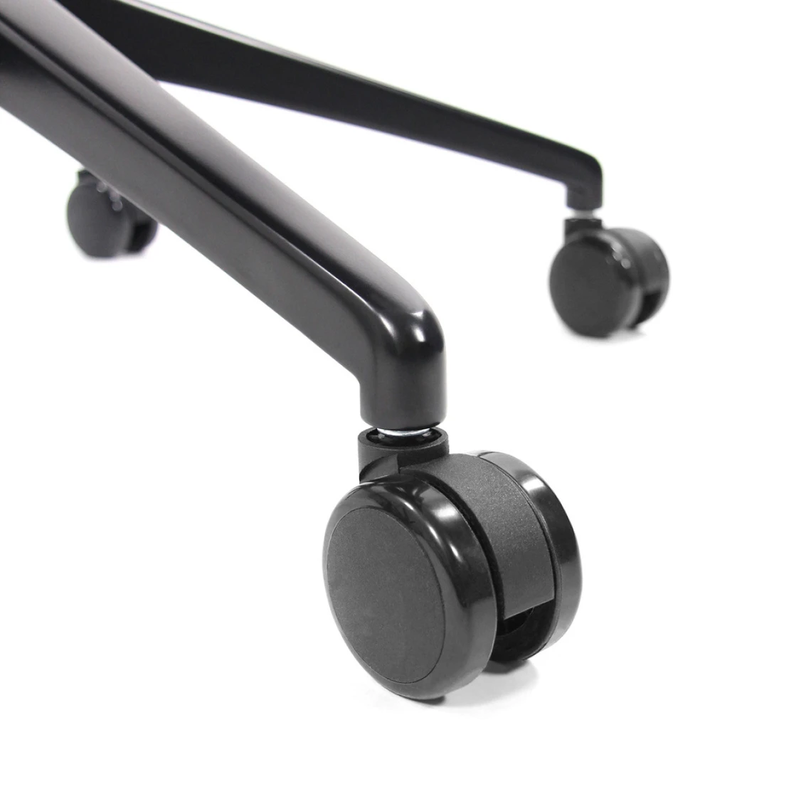 - Equipé de roulettes multifonctions auto-freinantes grâce auxquelles le mouvement du fauteuil est possible seulement durant son utilisation. Si l’utilisateur se lève, le mécanisme de freinage des roulettes s’engage automatiquement pour éviter un mouvement involontaire du fauteuil. Dès que l’utilisateur s’assoit, le mécanisme de freinage se débloque et le mouvement du fauteuil est de nouveau possible.