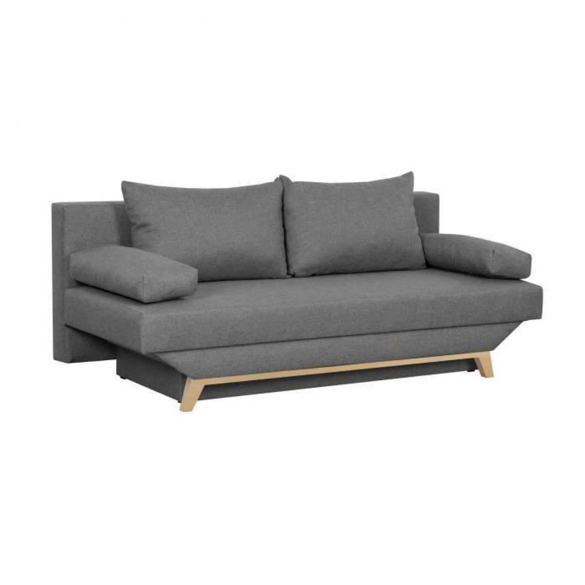 Points forts Cstore TEIJO Banquette convertible 3 places + coffre de rangement – Pieds bois clair – Tissu Gris Clair – L187 x P 91 x H 82 cm