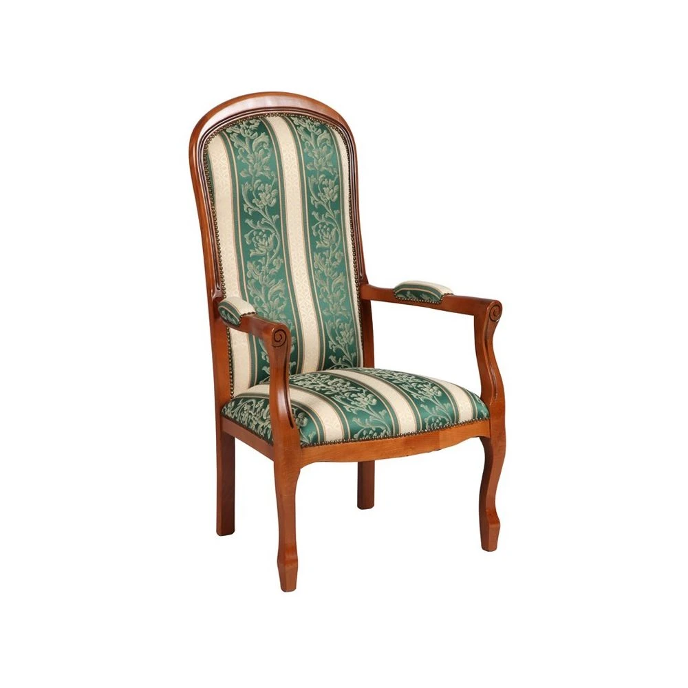 Fauteuil voltaire cosy tissu à motifs fleuris vert et beige ambiance classique