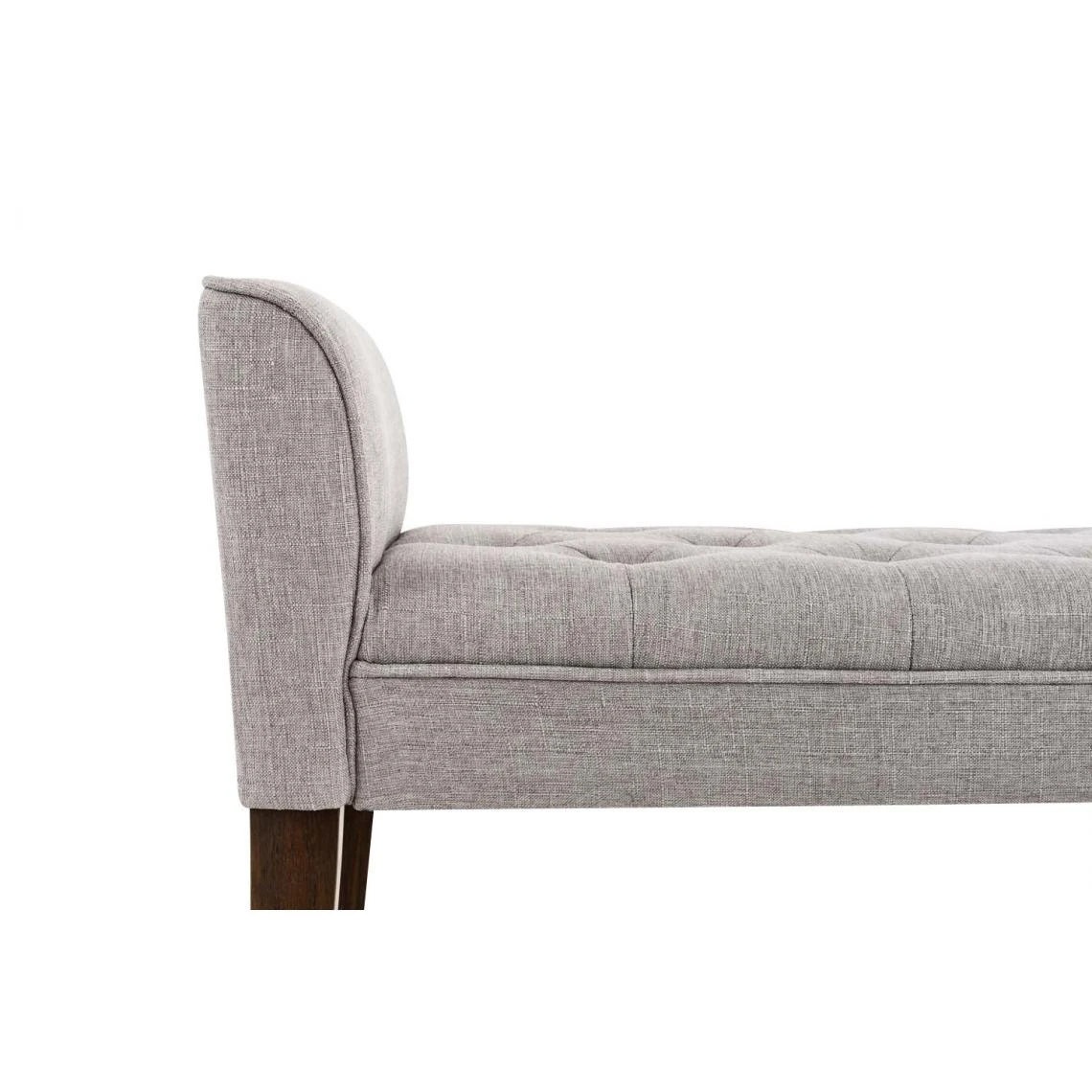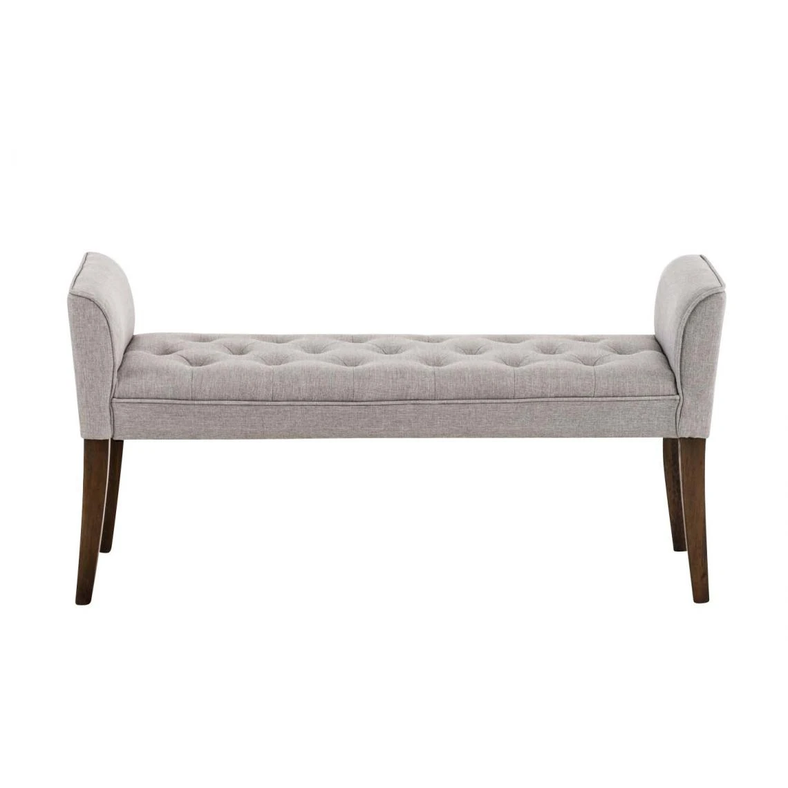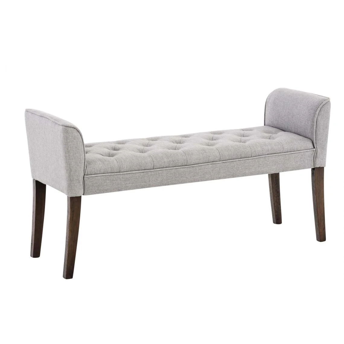 Points forts Decoshop26 Banc banquette capitonné en tissu gris clair avec pieds en bois marron foncé largeur 133cm BAN10092