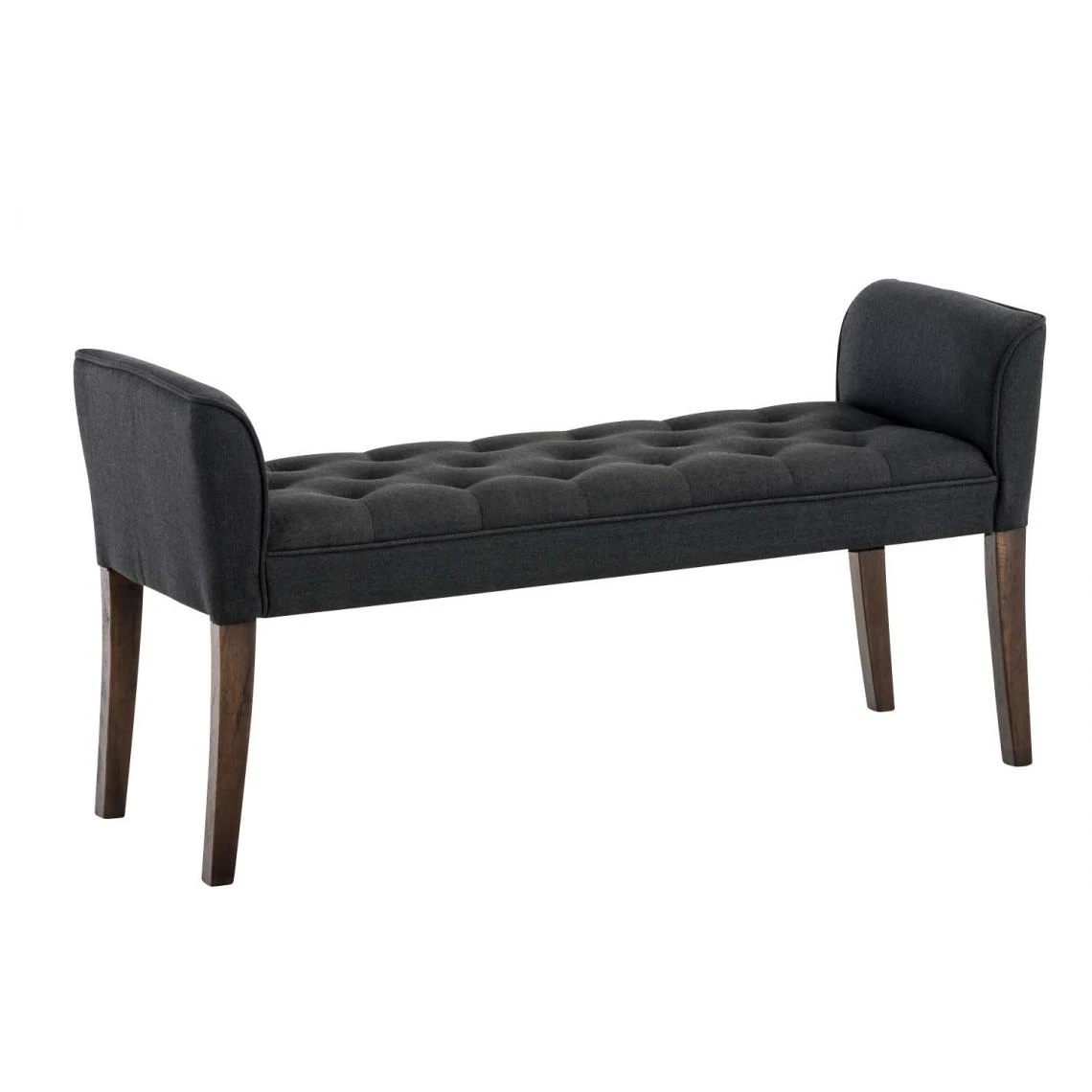 Points forts Decoshop26 Banc banquette capitonné en tissu gris foncé avec pieds en bois marron foncé largeur 133cm BAN10091