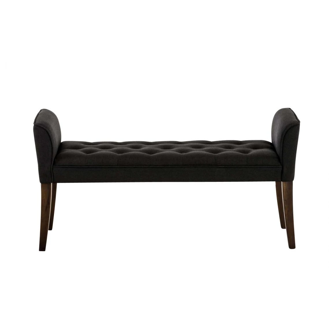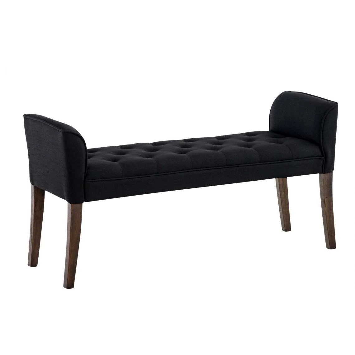 Points forts Decoshop26 Banc banquette capitonné en tissu noir avec pieds en bois marron foncé largeur 133cm BAN10099