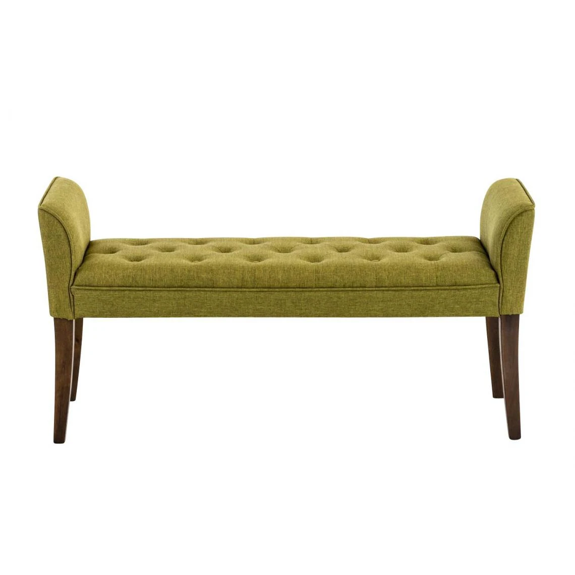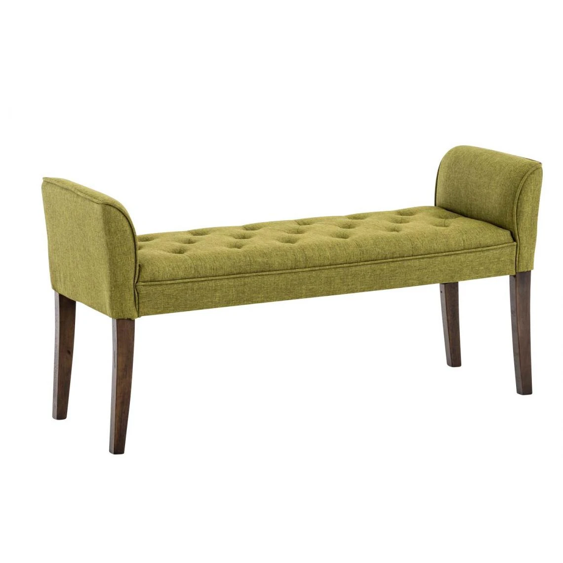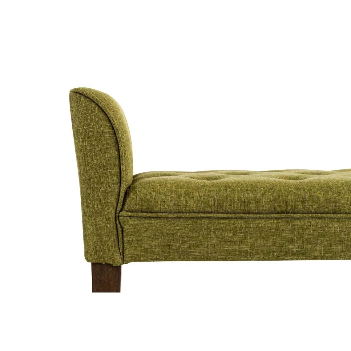 Points forts Decoshop26 Banc banquette capitonné en tissu vert avec pieds en bois marron foncé largeur 133cm BAN10096