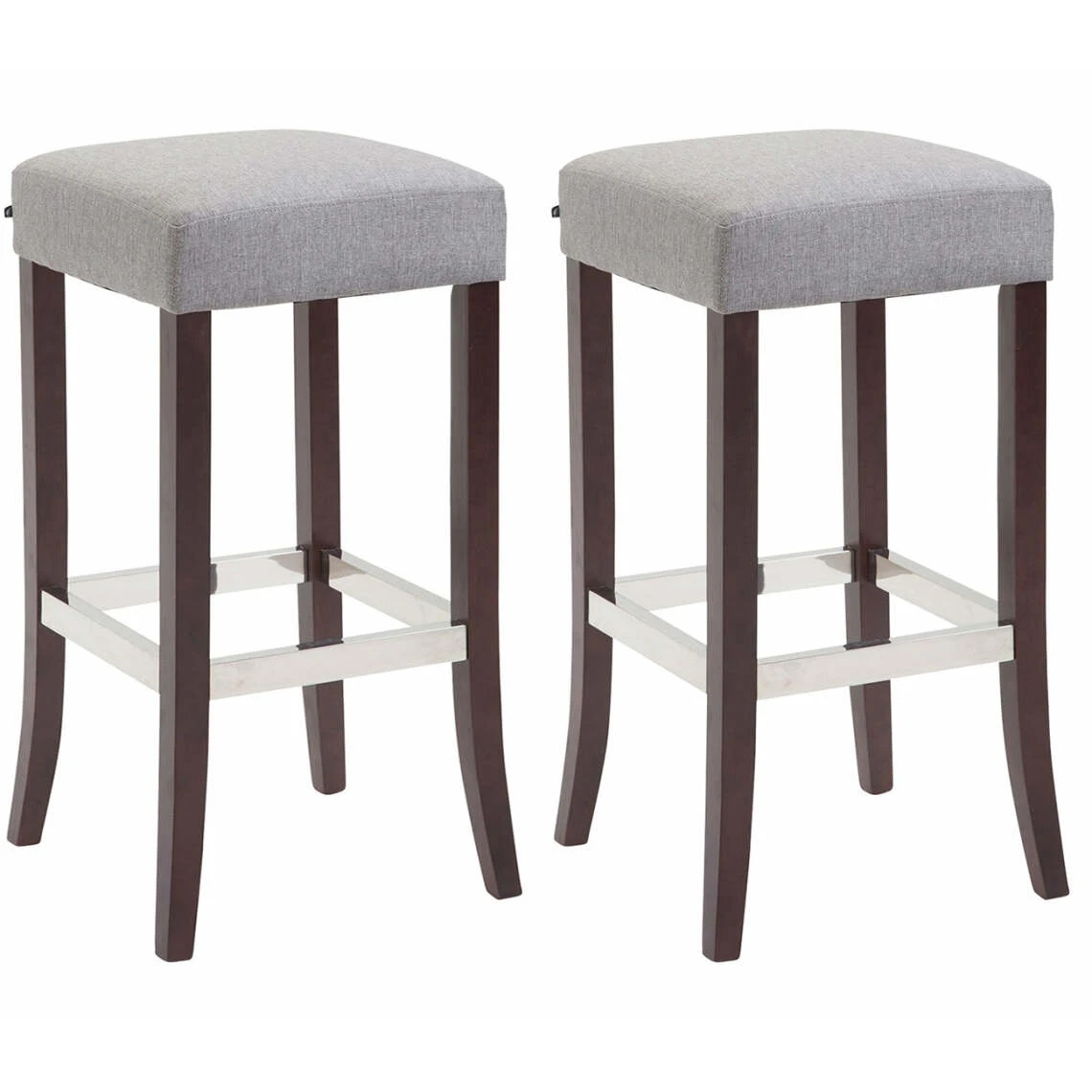 Points forts Decoshop26 Set de 2 tabourets de bar avec repose-pieds design rétro bois et tissu gris 10_0000577