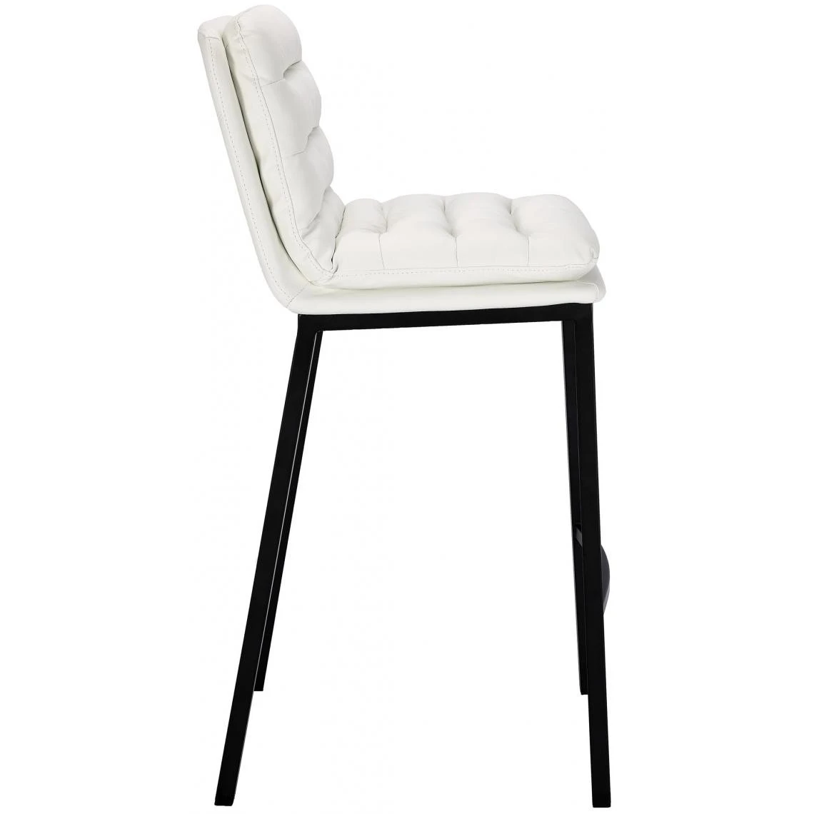 Tabouret de bar en similicuir blanc avec dossier avec assise rembourrée et matelassée support en métal noir mat Design chic et élégant Rembourrage épais et confortable Généreusement rembourrée et revêtue Dossier confortable Constitué d’un siège classique auquel est fixé un coussin rembourré et joliment matelassé Repose sur 4 pieds en métal noir mat Revêtement du siège : Similicuir (100% polyuréthane) Piètement solide et stable Dimensions (environ) Hauteur totale : 108 cm Largeur totale : 48 cm Profondeur totale : 58 cm Hauteur d’assise : 80 cm Surface d’assise : 43 x 39 cm Hauteur du dossier : 34 cm Capacité de charge max.: 250 kg Poids : 9kg Livraison: un tabouret Nous ne faisons pas d’expédition sur les îles (Corse inclue), Monaco et les DOM/TOM Décoshop26 10_0000531