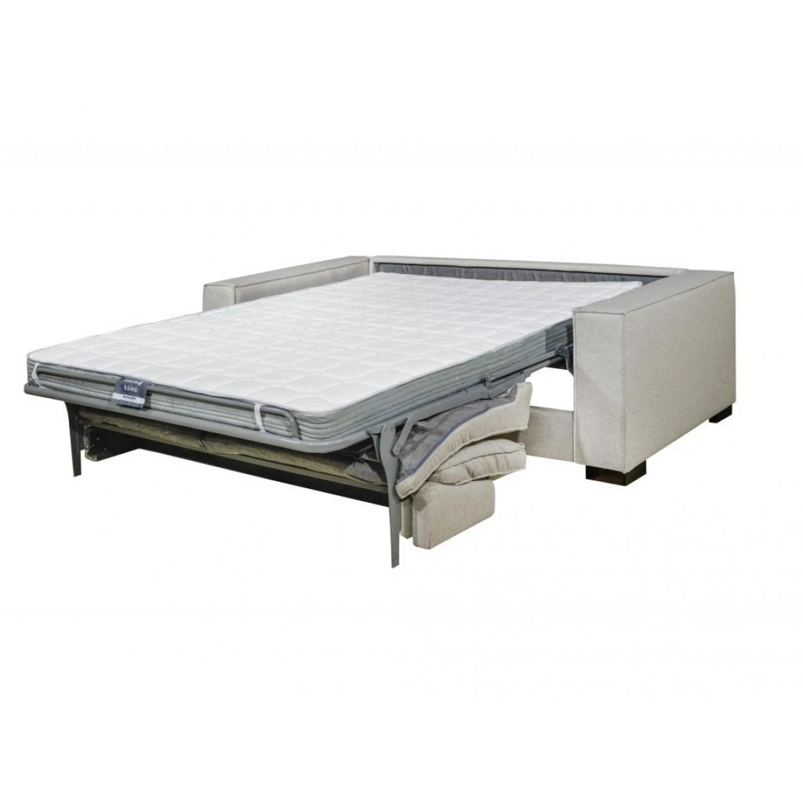 Points forts Dunlopillo Canapé 3 places convertible express en tissu beige – Couchage 140 cm – Matelas DUNLOPILLO 14 cm – DOLORES
