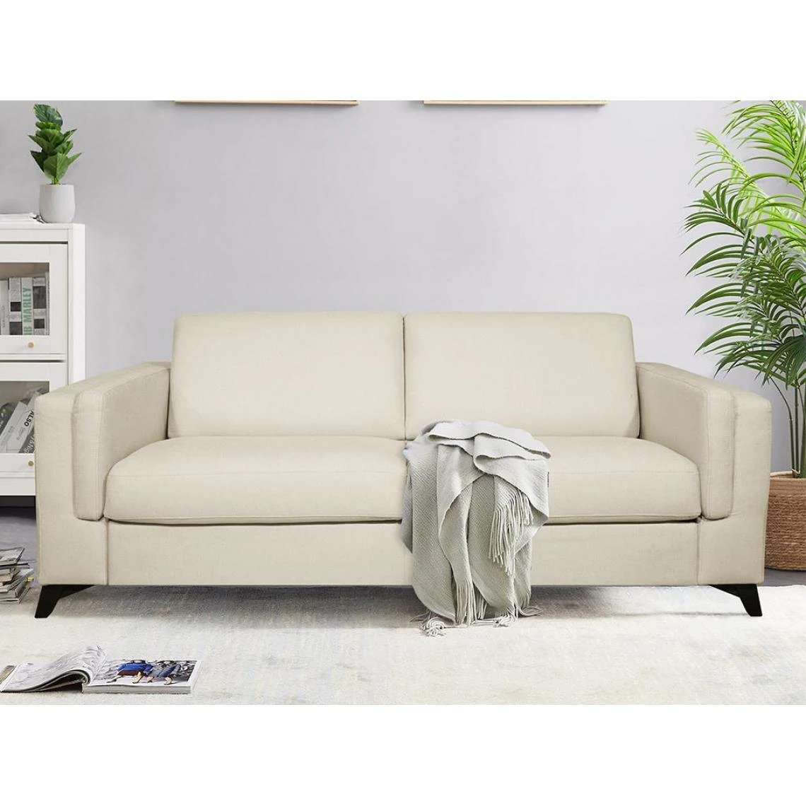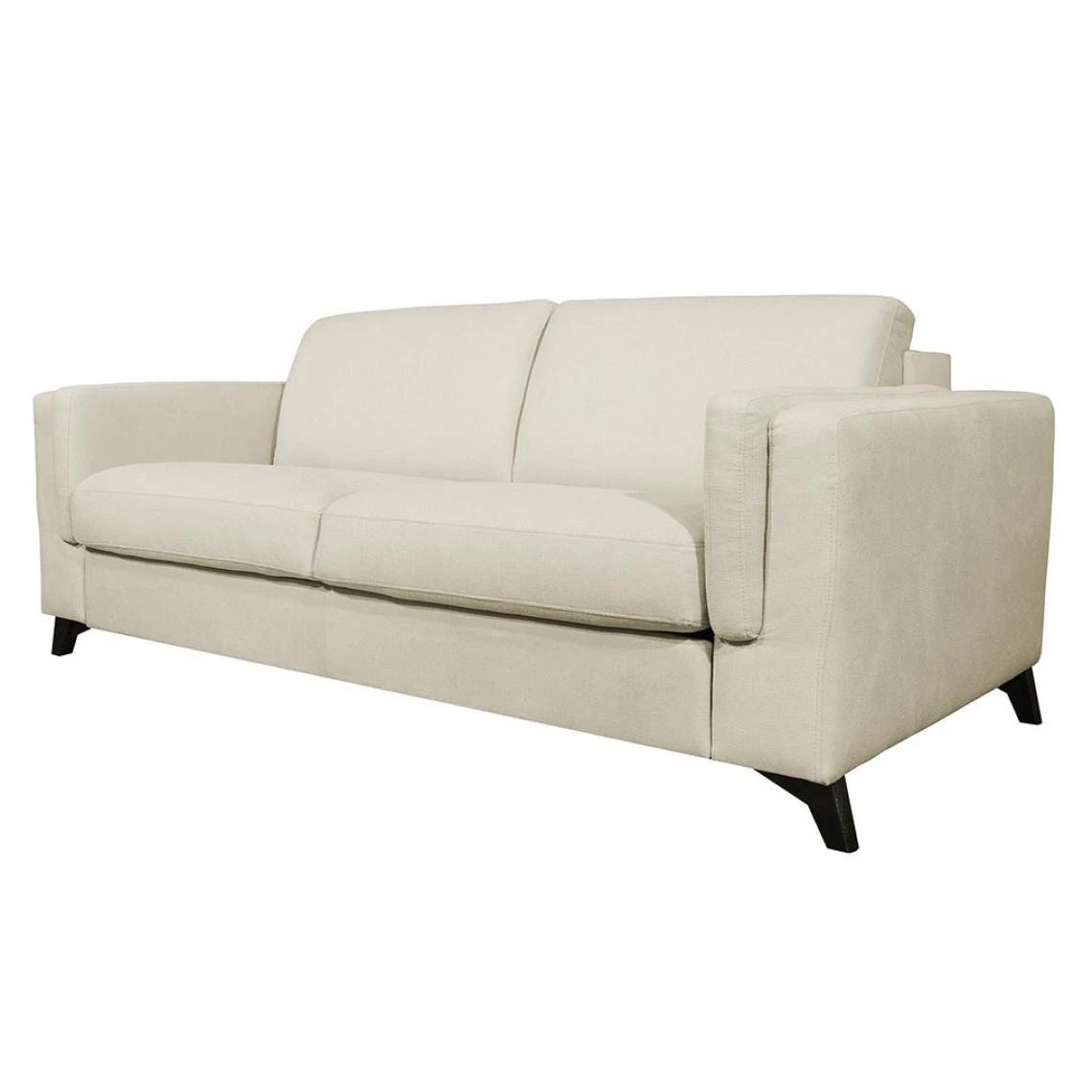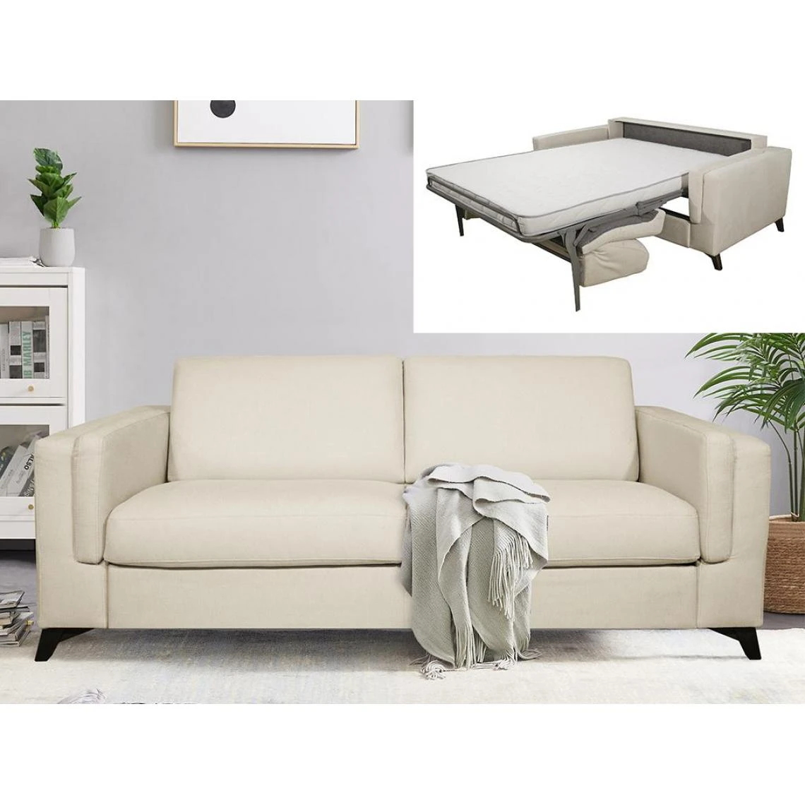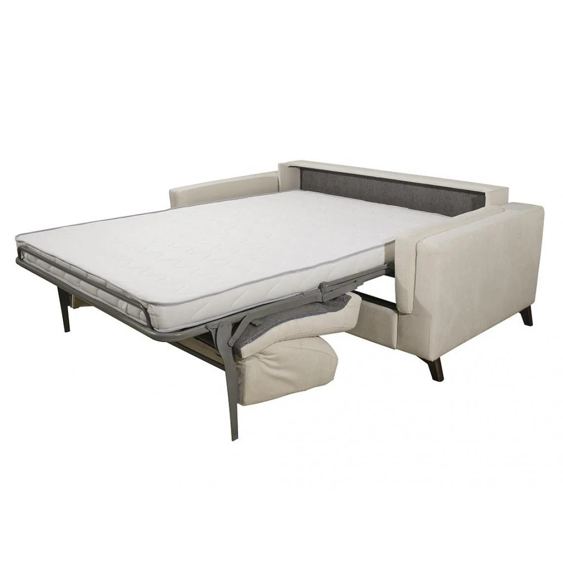 Points forts Dunlopillo Canapé 3 places convertible express en tissu beige – Couchage 140 cm – Matelas DUNLOPILLO 14 cm – MIRABEL
