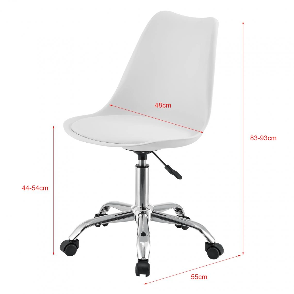 Points forts En.Casa Chaise de Bureau Design Siège Rembourré à 5 Roulettes Fauteuil Rotatif à 360° et Réglable en Hauteur Polypropylène Similcuir Métal Blanc [en.casa]