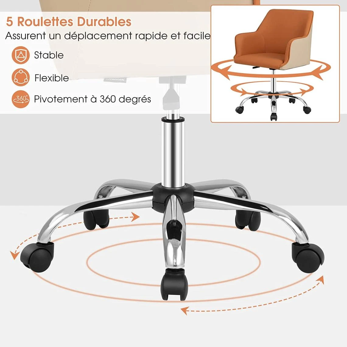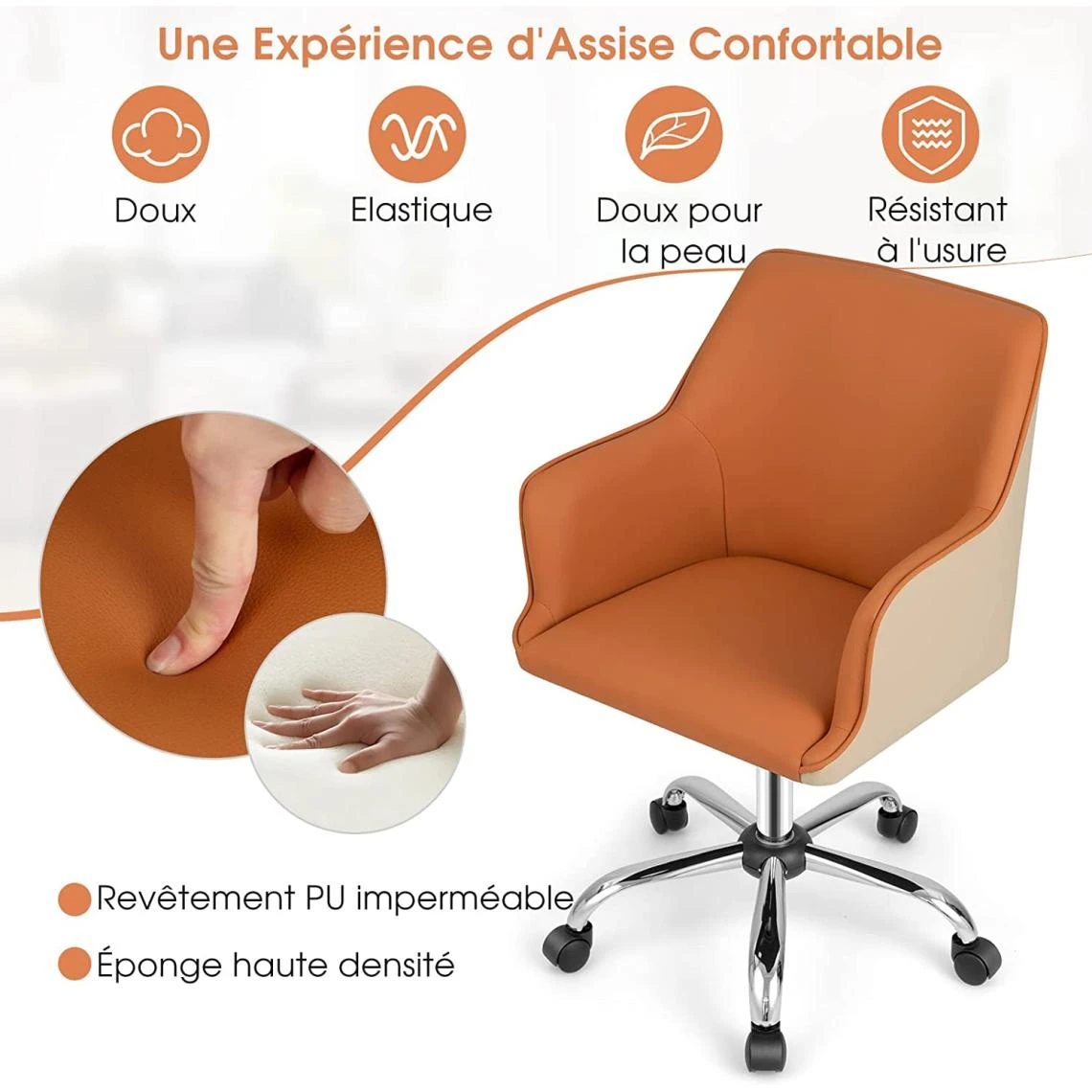 Points forts GIANTEX COSTWAY chaise de bureau en cuir pu siège réglable, fauteuil de bureau pivotant siège ergonomique, charge 150 kg, marron