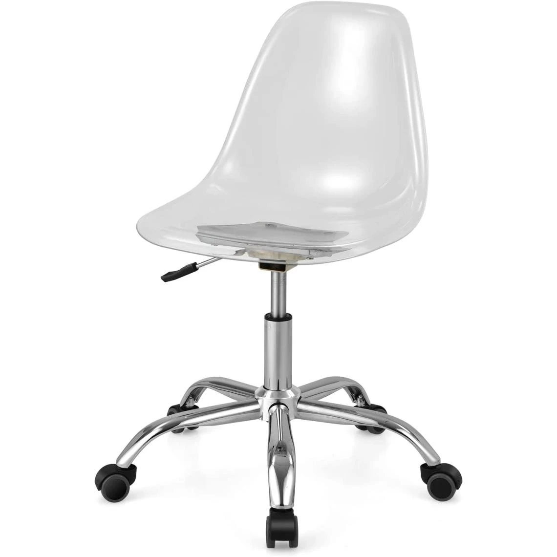 Points forts GIANTEX COSTWAY chaise de bureau transparente style scandinave, chaise pivotante à roulettes moderne en acrylique avec base chromée hauteur réglable 42-52,5 cm