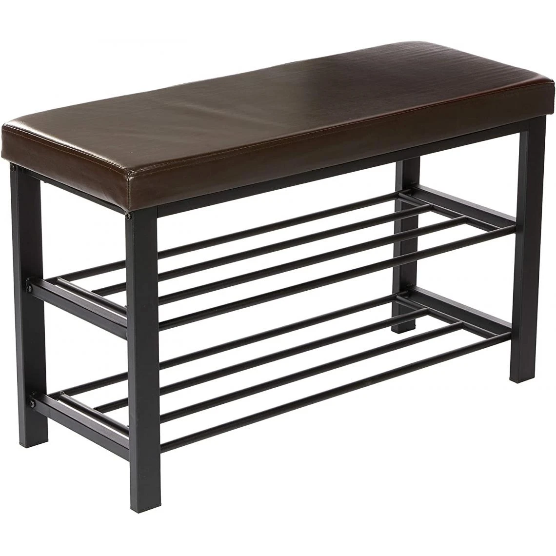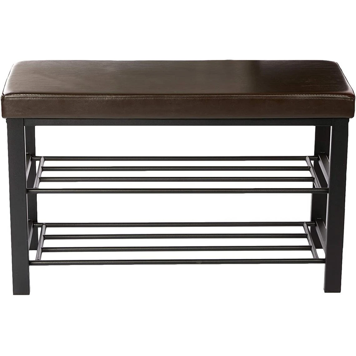Points forts Helloshop26 Banc de rangement à chaussures meuble assise tabouret en similicuir 2 niveaux marron 13_0000360