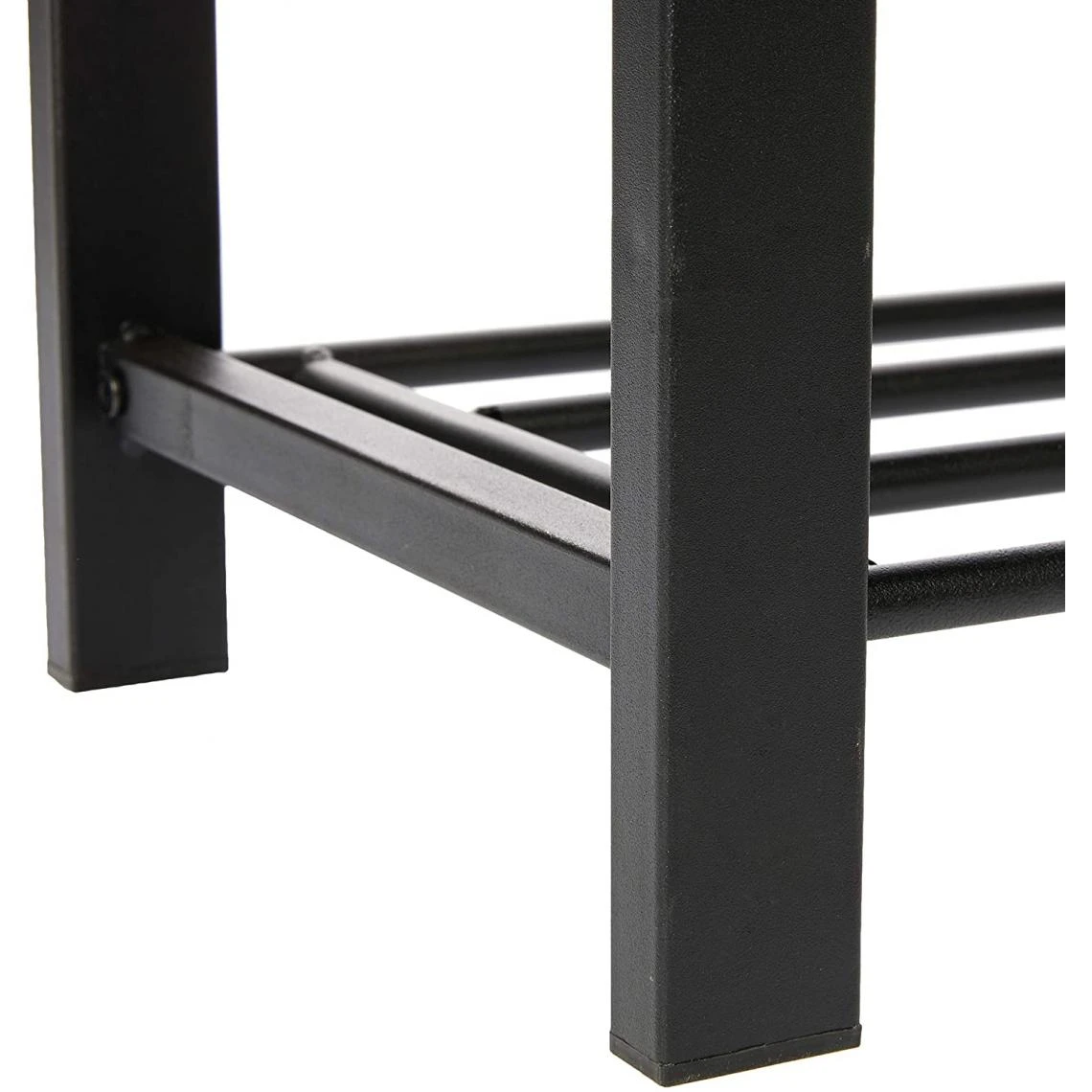 Détails sur le banc de rangement à chaussures • Dimensions H x lx P : 49 x 81 x 31 cm • Poids : 7,2 kg • Composition du coussin : similicuir • Matériel de la structure : métal • Écart entre les 2 étages : 19 cm Banc à chaussures avec coussin en similicuir • Disponible en trois couleurs : noir, blanc ou marron • De place pour au moins 6 paires par étage • Charge maximale : jusqu’à 100 kg • Montage facile • Meuble multifonctions Livraison • 2 parties latérales • 2 étages • Vis • Notice de montage • Livré sans décorations
