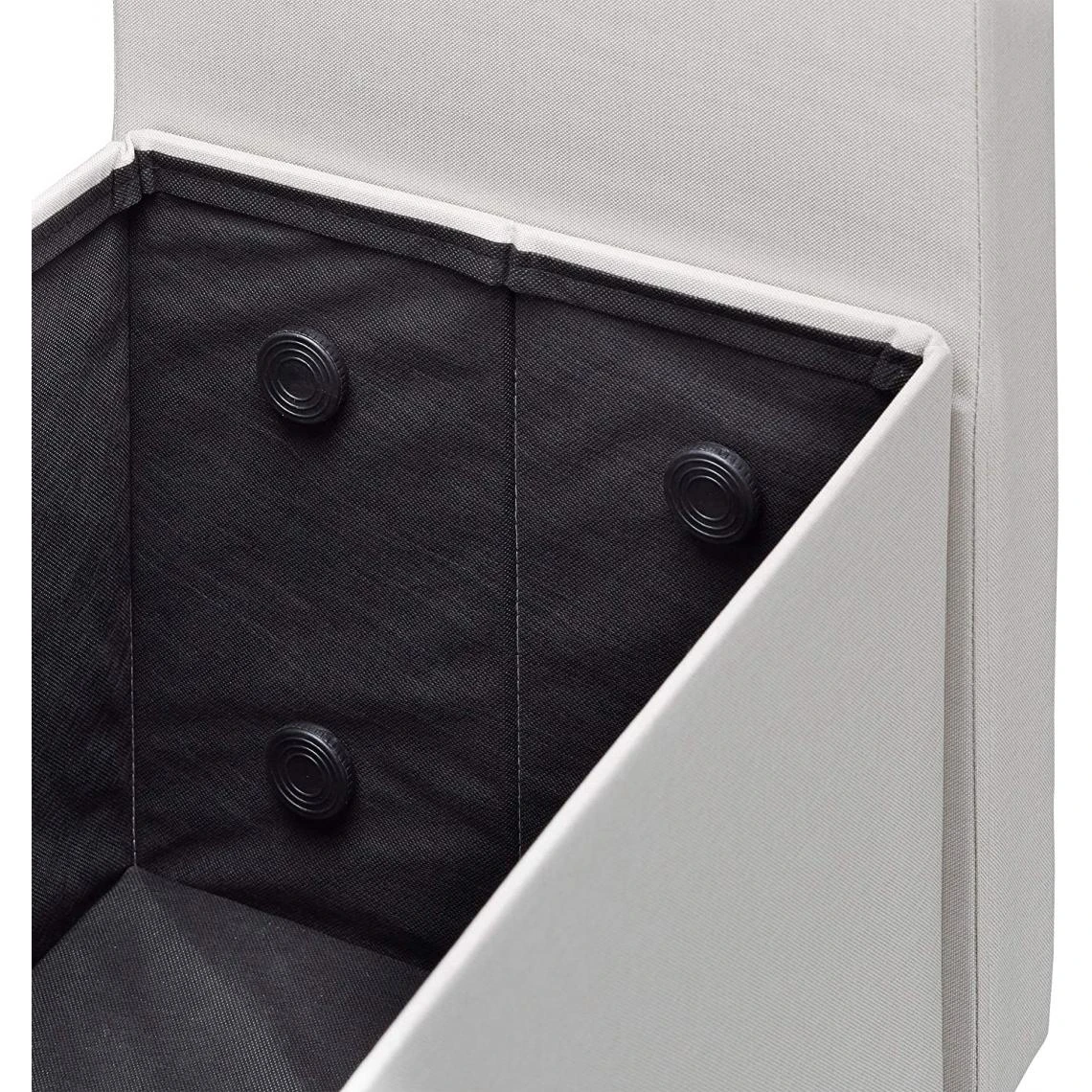 Banc avec dossier Tissu doux et confortable Avec dossier rabattable Accoudoirs et deux coussins en forme de boudin Espace de rangement pour linge de maison, jouets, magazines etc. Pour le couloir, chambre à coucher ou comme canapé pour enfants Canapé design chic Montage rapide Contenu 1x Banquette avec dossier 2 x Coussins polochon notice en allemand sans objets de décoration notice en anglais sans outils Grand banquette de rangement pliable Dimensions totales HxlxP: 75 x 115 x 47 cm Dimensions compartiment intérieur HxlxP: 34 x 97 x 34 cm Coussin H x D: 39 x 20 cm Dimensions du dossier HxlxP: 38 x 98 x 5,5 cm Accoudoirs HxlxP: 16,5 x 7,5 x 37,5 cm Poids: 19 kg Tissu de lin en coton, panneaux MDF Avec une capacité d’environ 112 litres Capacité de charge : 300 kg