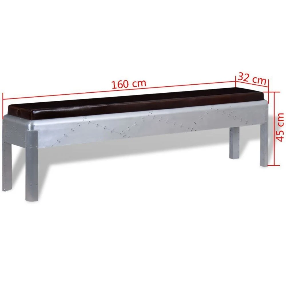Ce banc d’entrée doux et confortable a un look emblématique, ce qui en fait un accessoire parfait à tout intérieur. Il aura fière allure dans votre couloir, votre salon ou votre salle à manger. Le cuir de chèvre véritable rembourré est doux au toucher et ajoute à son style industriel unique. Le rembourrage procure une expérience confortable, tandis que la base et les pieds en aluminium poli et solide donnent au banc son aspect emblématique et le rendent stable et durable. Couleur : Marron et argenté Matériau : rembourrage en cuir de chèvre véritable + base en aluminium Dimensions : 160 x 32 x 45 cm (L x l x H) Largeur du siège : 156 cm Profondeur du siège : 28 cm Assemblage facile Matériel: Cuir: 100%