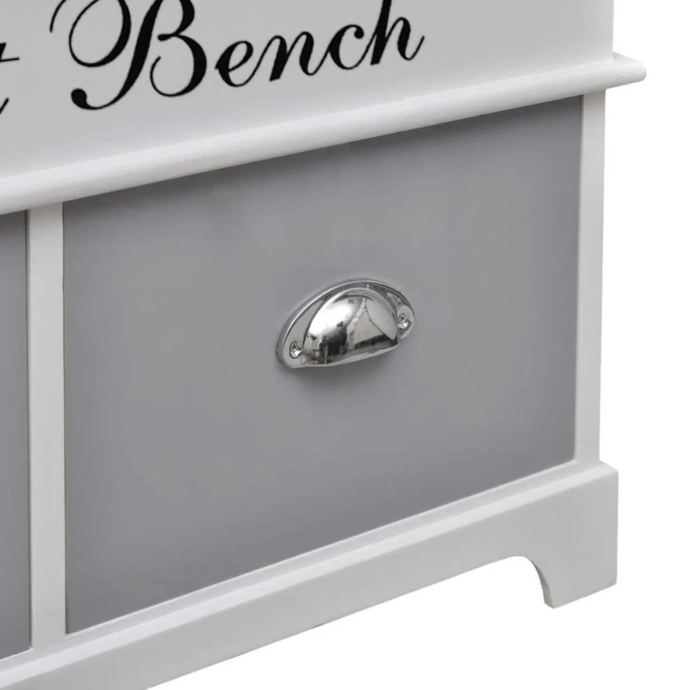 Ce banc pourvu de trois cagettes et deux tiroirs touve sa place dans une entrée, le salon ou dans la chambre à coucher grâce à son apparence exquise. Ce type de banc vous permet de vous asseoir pour chausser avant de sortir.Deux tiroirs en dessous du siège offrent un large espace de rangement, vous pouvez y ranger les chaussures, sacs, livres, jouets et d’autres objets. Son cadre est en bois de haute qualité et ses paniers durables ont été fait à partir de matériau écologique (maïs), ce qui est conçu pour des années d’utilisation.Vous pouvez trouver un bon équilibre entre le rôle utilitaire et la fonction decorative de ce banc. Couleur: blanc Matériau du cadre: bois de paulownia et contreplaqué Dimensions totales: 69 x 34 x 45 cm Dimensions du tiroir: 31 x 32 x 20 cm Matériel: Polyester: 100%