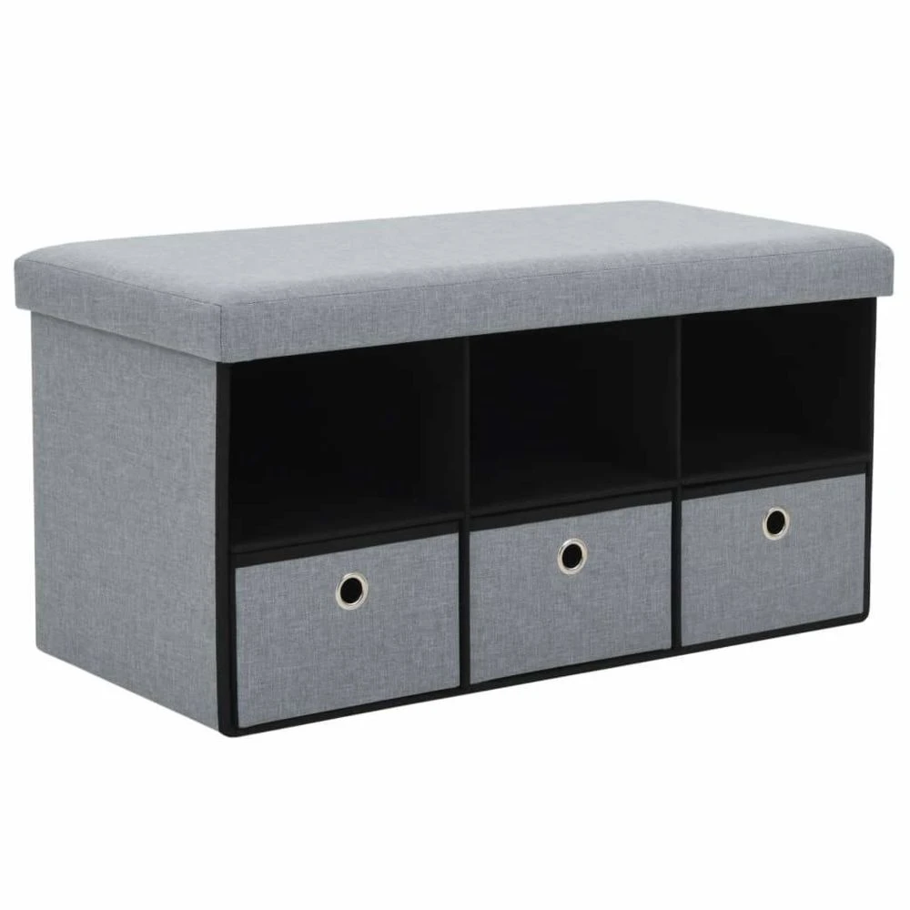 Points forts Helloshop26 Banquette pouf tabouret meuble banc de rangement pliable faux lin 76 cm gris clair 3002155