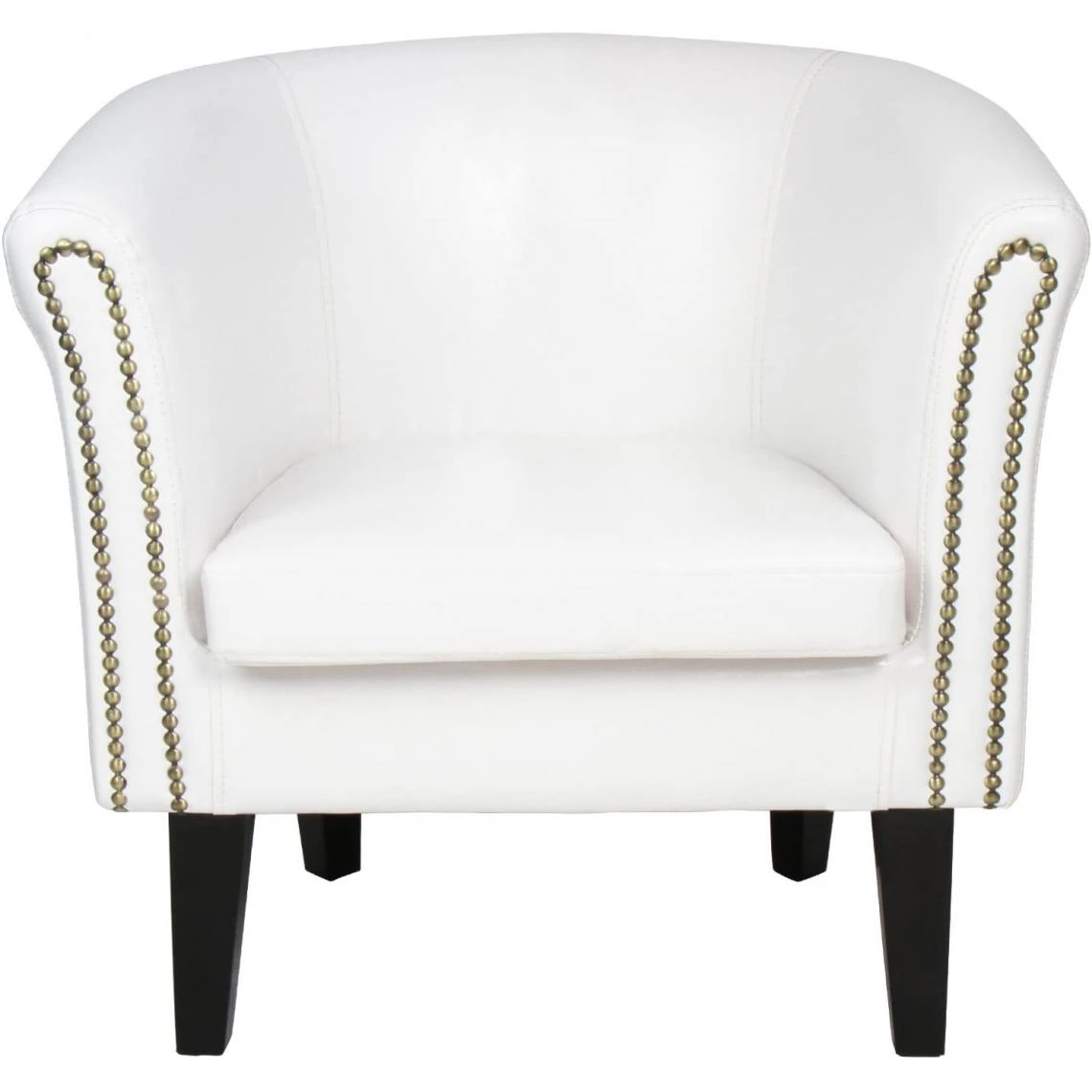 Points forts Helloshop26 Fauteuil chesterfield avec repose pied en simili cuir avec éléments décoratifs en cuivre chaise cabriolet tabouret pouf meuble de salon blanc 01_0000101